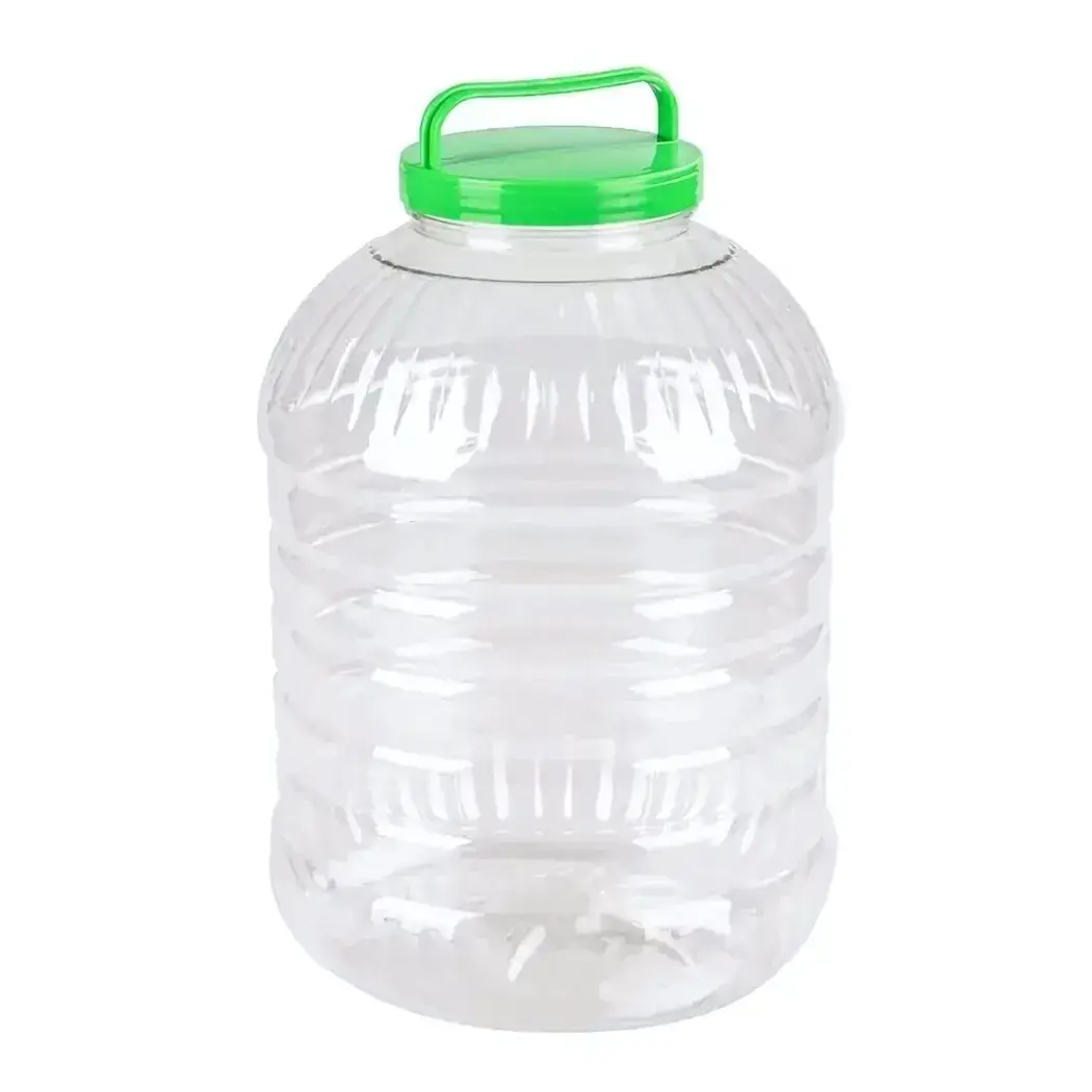 Прозрачный бидон объемом 10 литров из прочного пищевого пластика ПЭТ — идеальное решение для дачи, дома и садовых работ. Рифленая поверхность обеспечивает удобный захват, а эргономичная ручка делает переноску комфортной даже при полной загрузке.
