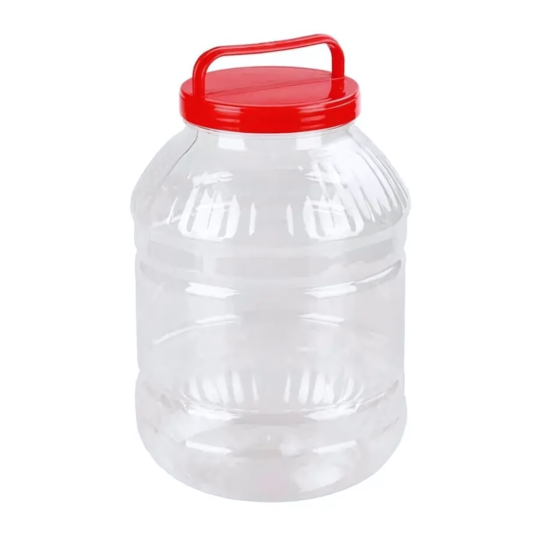 Этот прозрачный бидон объемом 5 литров с удобной ручкой на крышке станет незаменимым помощником в хозяйстве. Изготовленный из прочного пищевого пластика ПЭТ, он идеально подходит для хранения и переноски воды, молока, компота и других напитков.