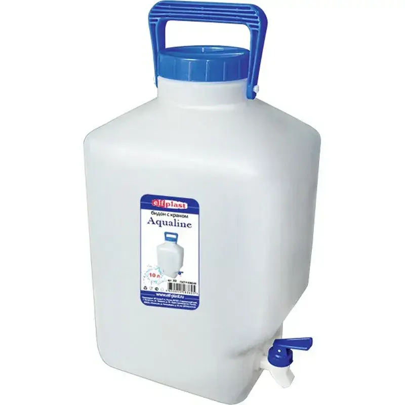 Пластиковый бидон ёмкостью 10 литров с краном создан для комфортного хранения воды, напитков или технических жидкостей. Благодаря продуманной конструкции он сочетает практичность и функциональность для дачи, дома или кемпинга.