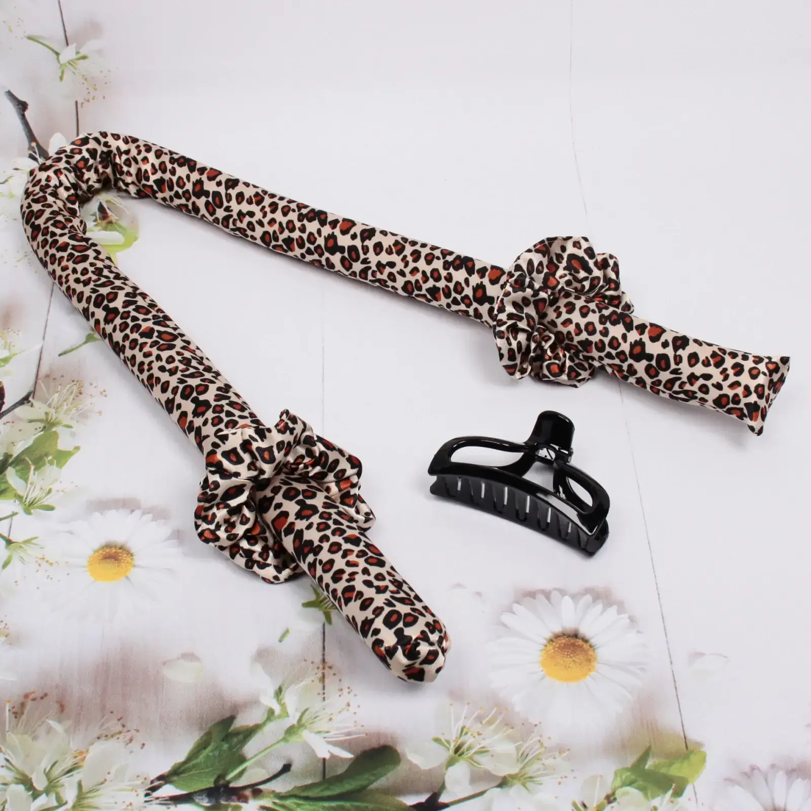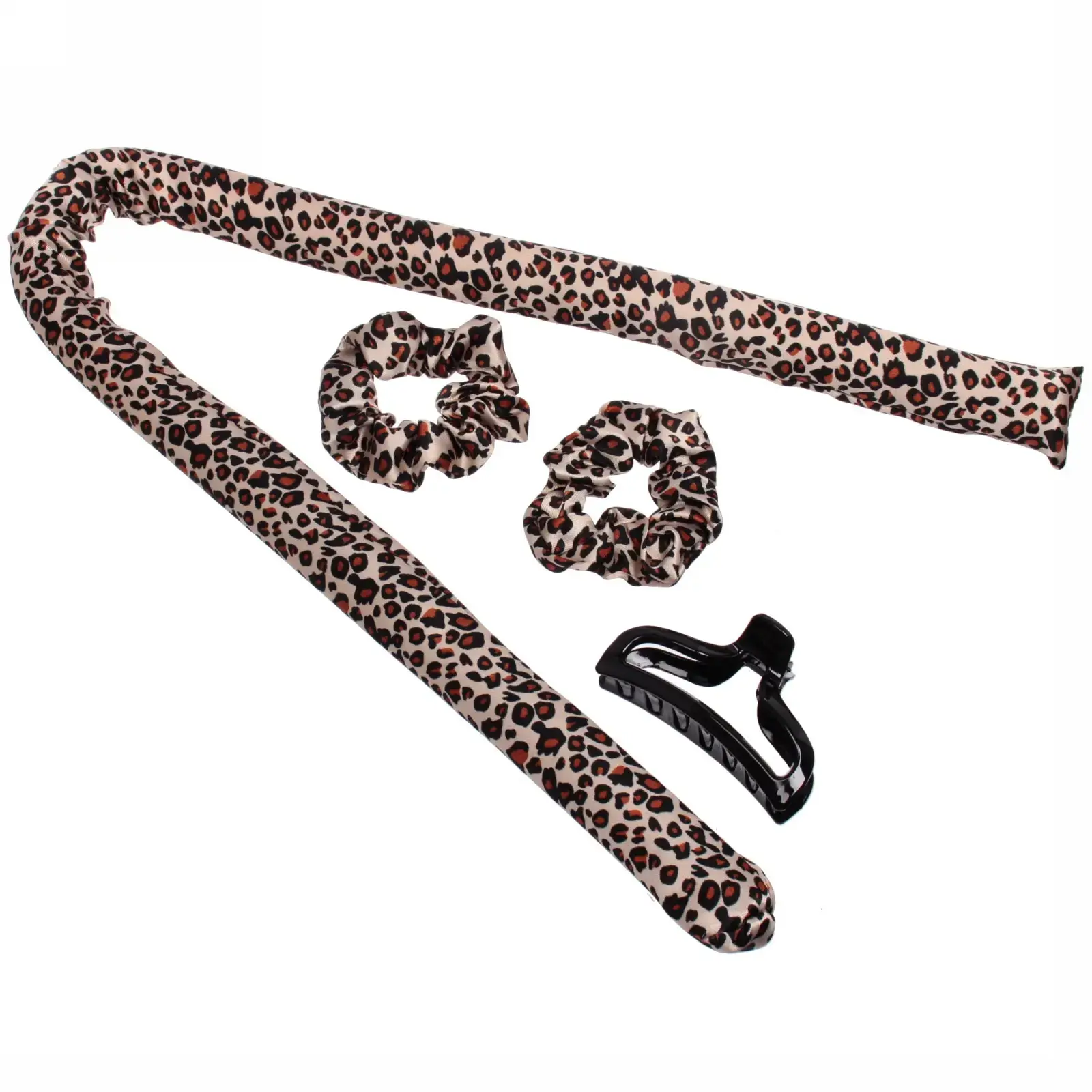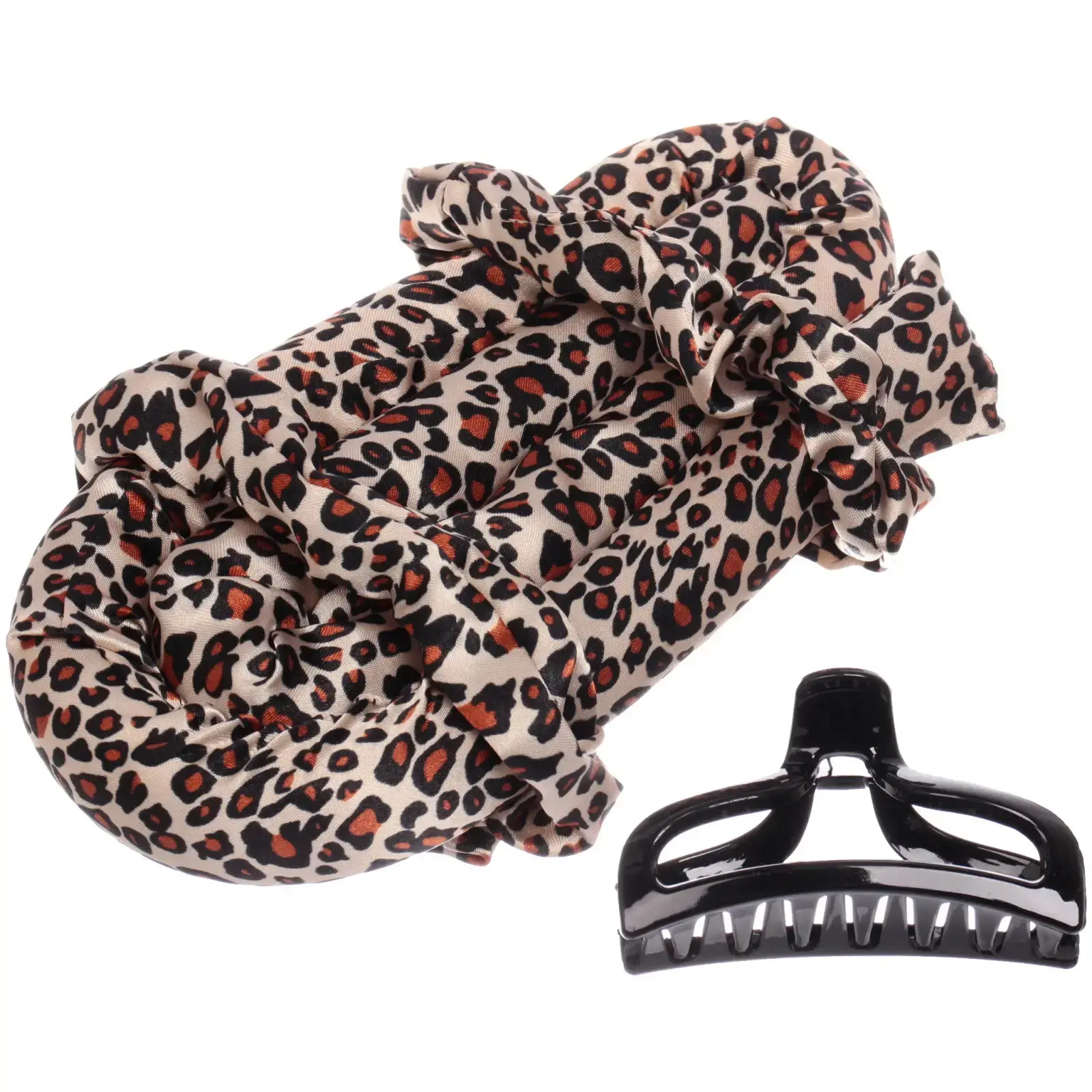 Эти бигуди не только удобны в использовании, но и позволяют вам экспериментировать с прическами. В комплект входят все необходимые элементы для укладки: 2 резинки диаметром 12 см, крабик-заколка размером 10*5 см и ободок для бигуди длиной 90 см. Материалы, из которых изготовлены аксессуары, обеспечивают долговечность и надежность. Бигуди имеют стильный леопардовый принт, который добавляет изюминку в ваш образ.