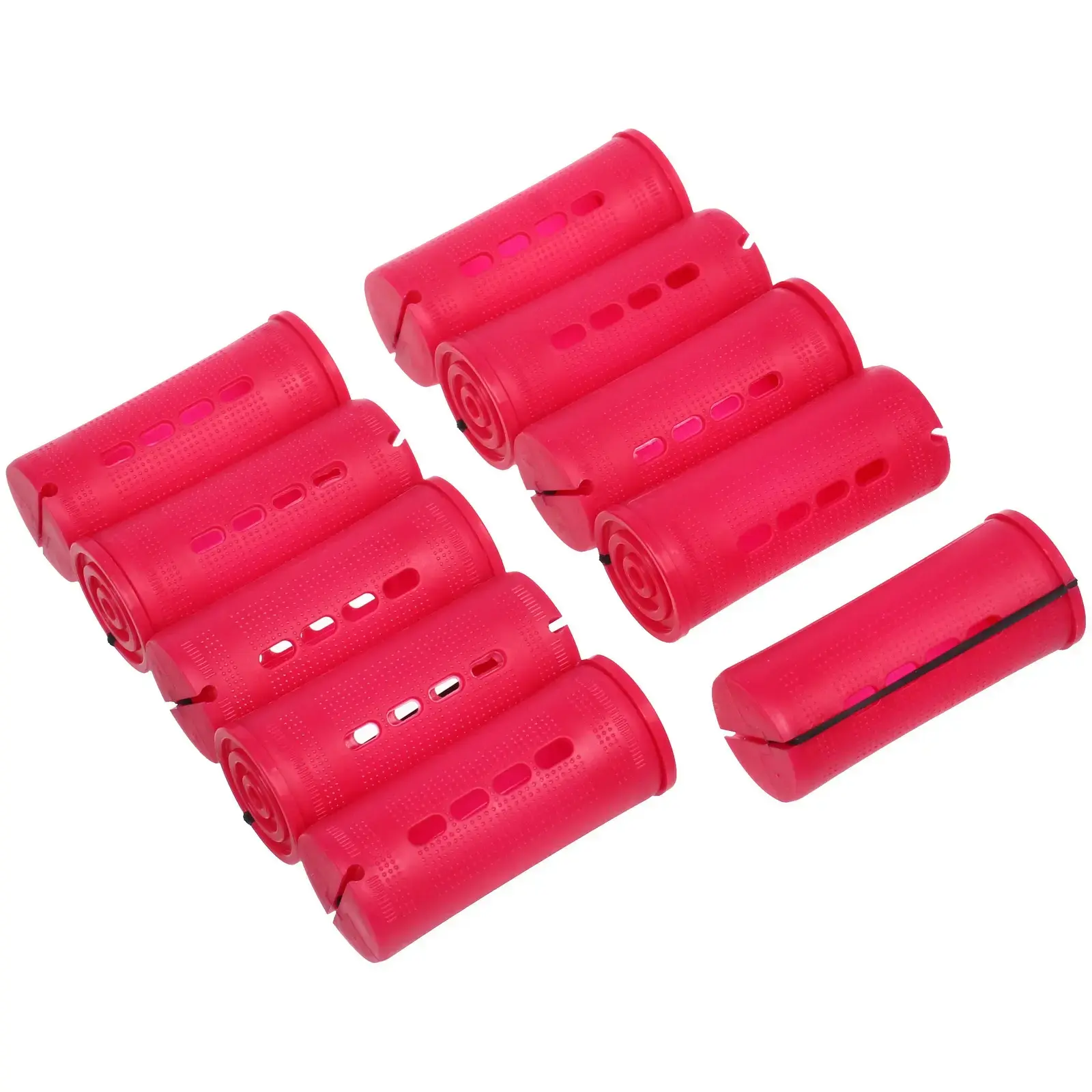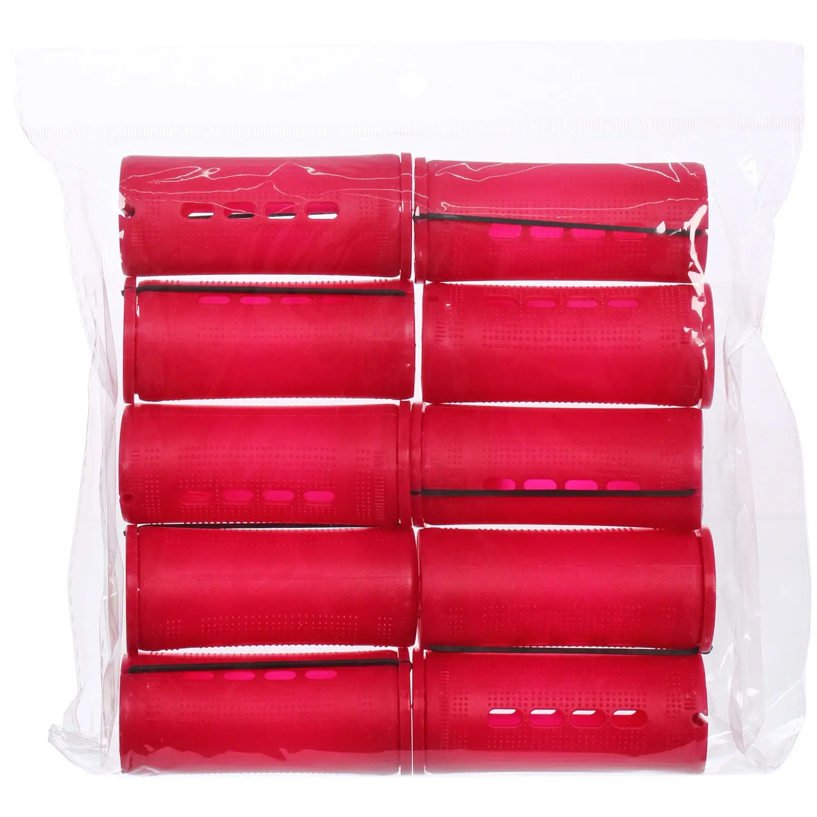 В наборе – 10 бигуди‑коклюшек, каждая выполнена из прочного, гибкого пластика. Фиксирующие резинки изготовлены из мягкой резины, которая не вырезает волосы и не оставляет следов. Цвет – фиолетовый, диаметр каждой бигуди – 3,5 см.