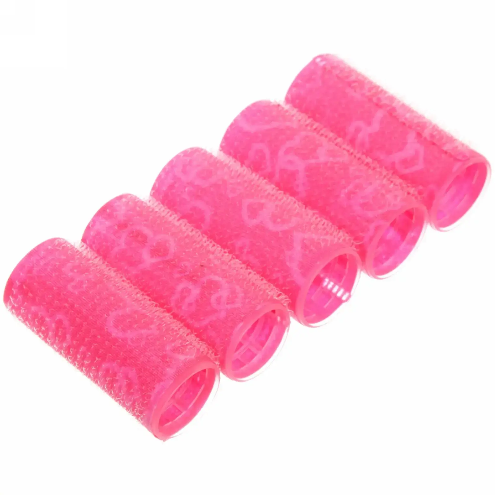 В комплект входят 5 бигудей диаметром 2,5 см, что делает их идеальными для создания как мелких, так и крупных локонов. Изготовлены из качественного пластика, они легкие и удобные в использовании. Бигуди имеют текстурированную поверхность с узором в виде сердечек, что добавляет им уникальности и стиля.