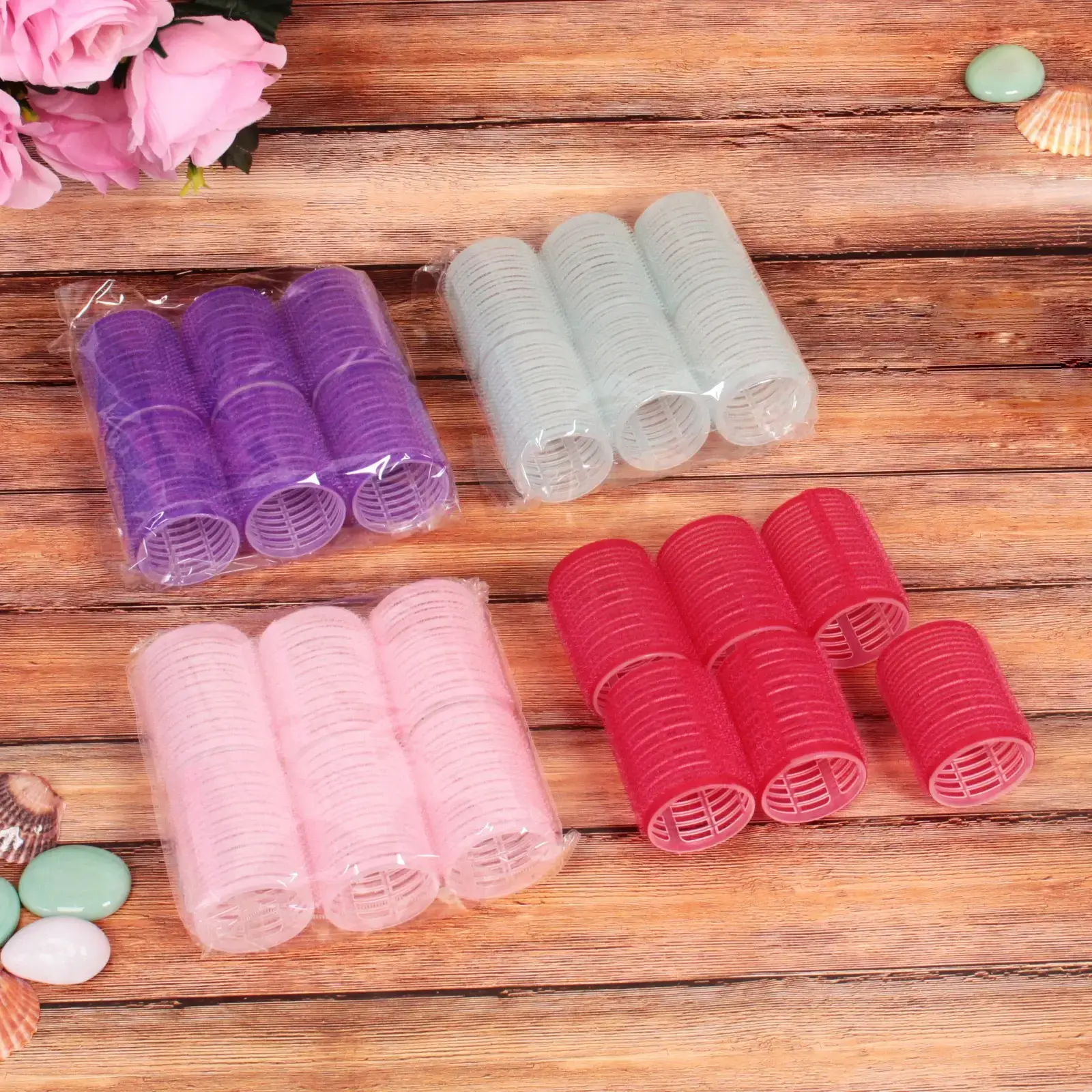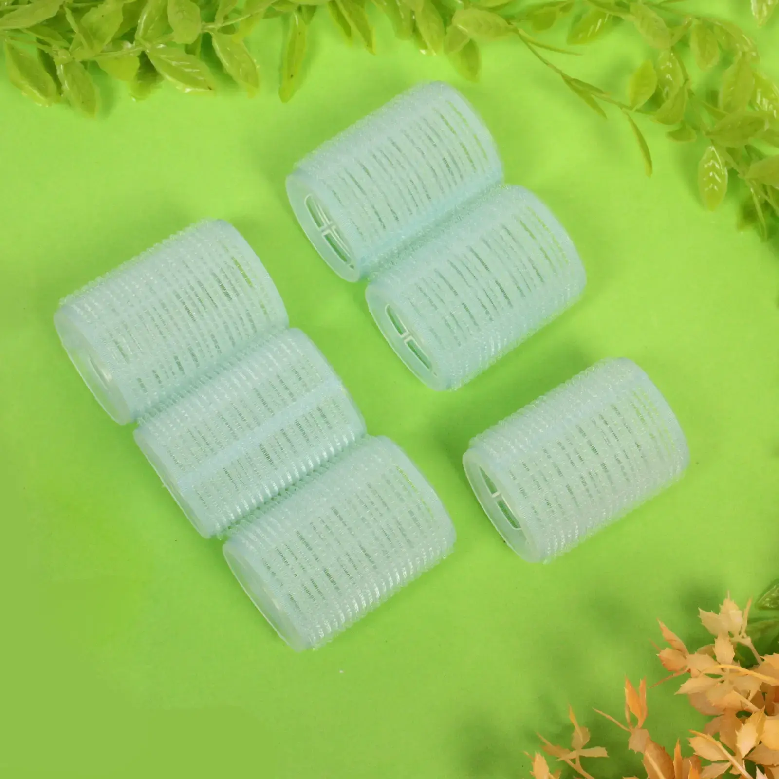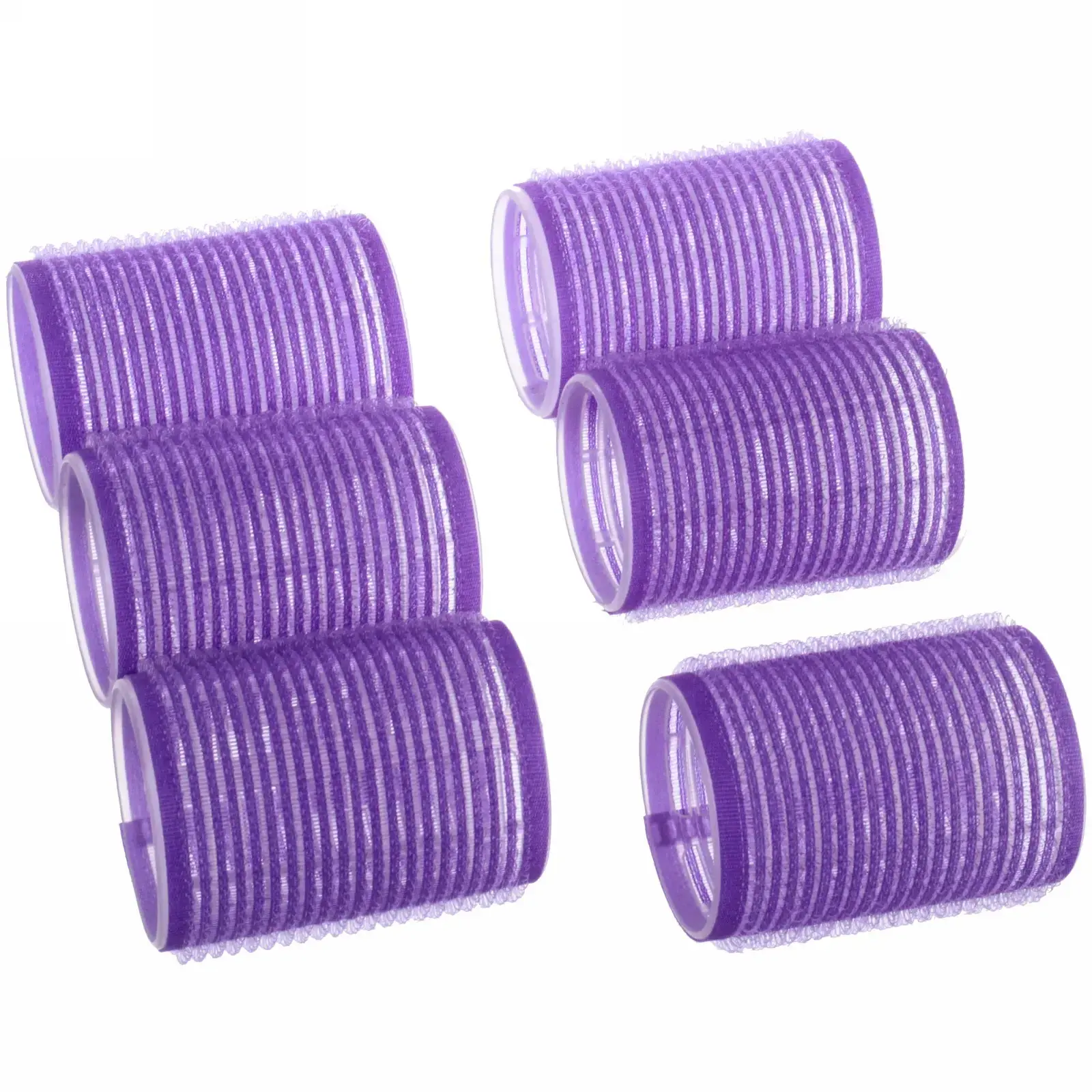 В комплекте 6 бигудей разного цвета, диаметр каждого — 4,5 см. Материал — пластик с липкой поверхностью для плотного сцепления с волосами. Одного набора достаточно для укладки средних по густоте волос. Отличный выбор для ежедневных причесок и бережного ухода.