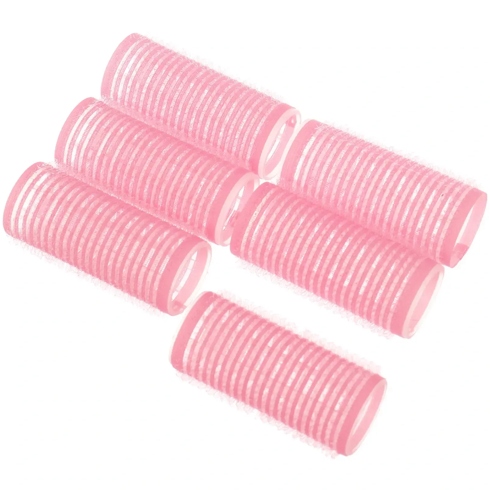 Бигуди-липучки 6 шт., диаметр 2,5 см, нежно-розовый, для упругих локонов