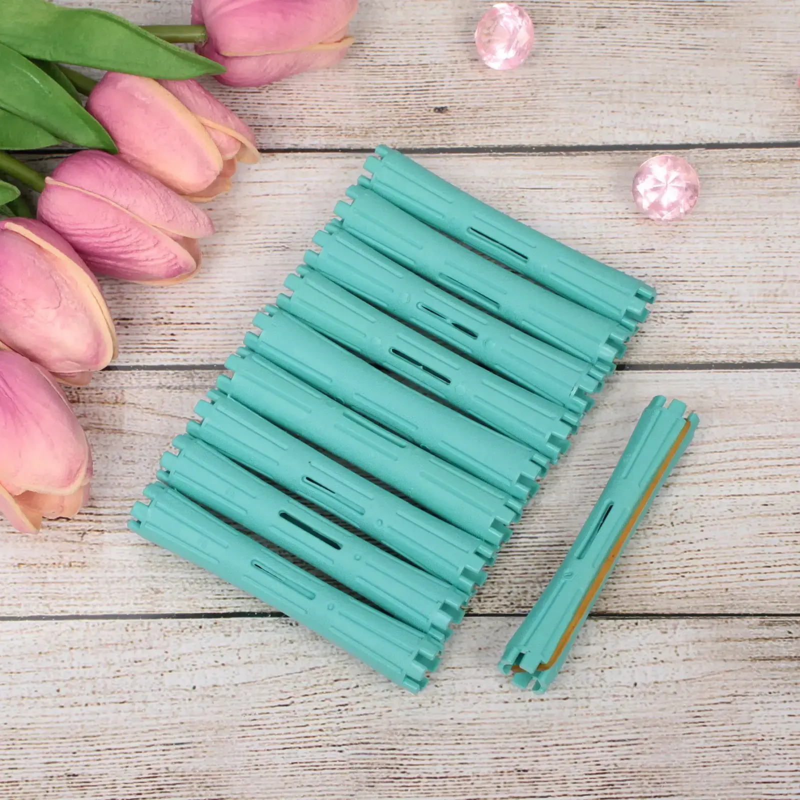 Бигуди пластмассовые-коклюшки 'KUDRI' 10шт, d-1.4см, цвет мятный
