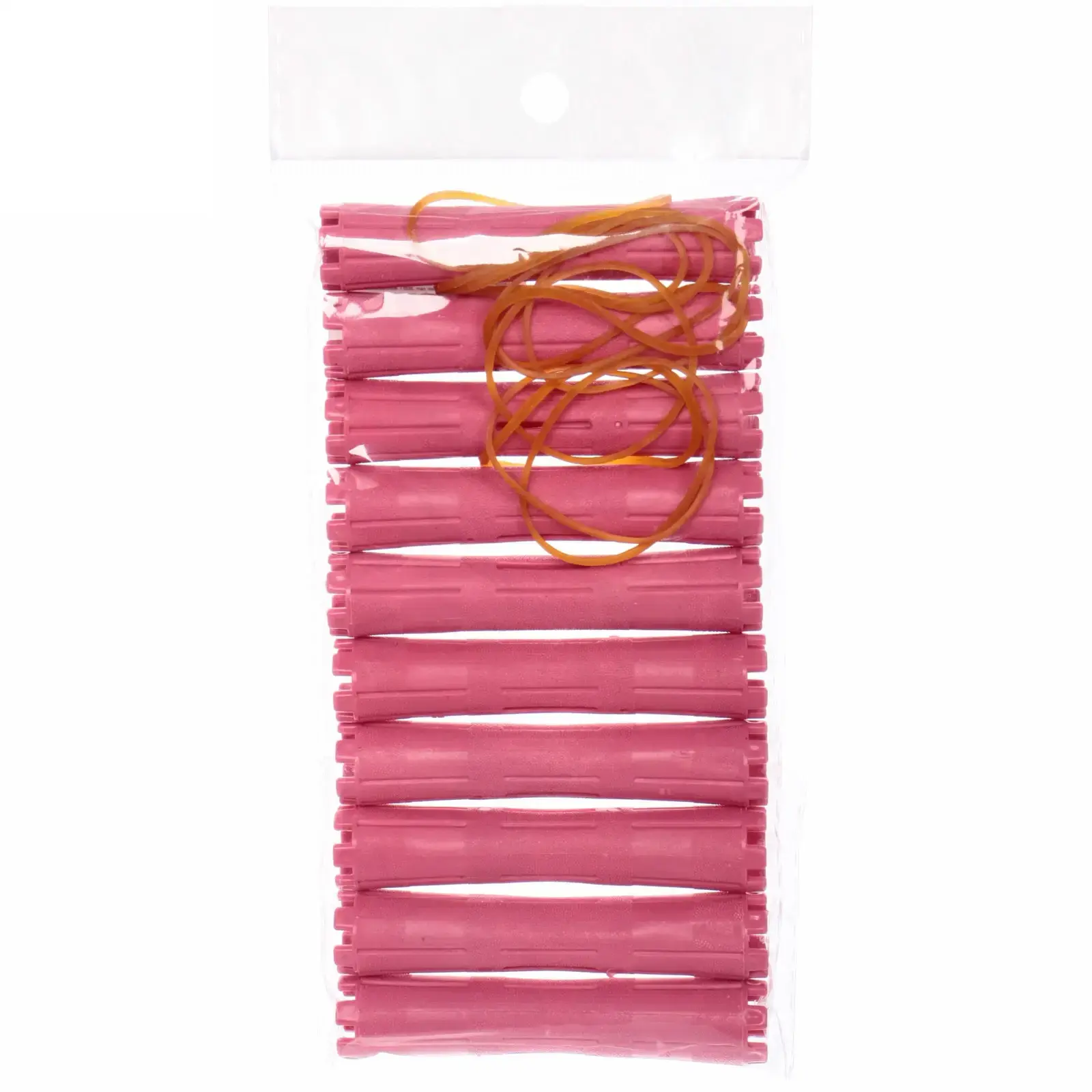 Бигуди-коклюшки пластиковые 10шт, диаметр 1.8см, розовые, прозрачный пакет с подвесом «KUDRI»