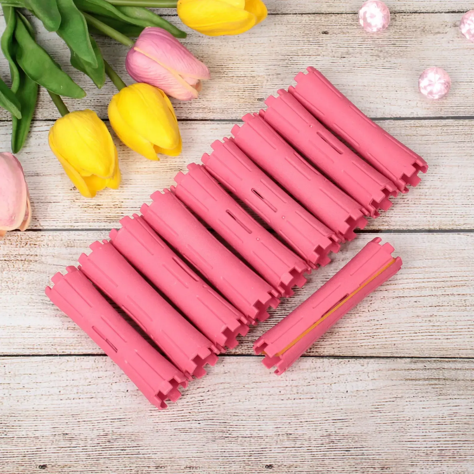 В наборе: 10 бигудей + крепежные элементы. Материал: высококачественный пластик. Цвет: розовый.