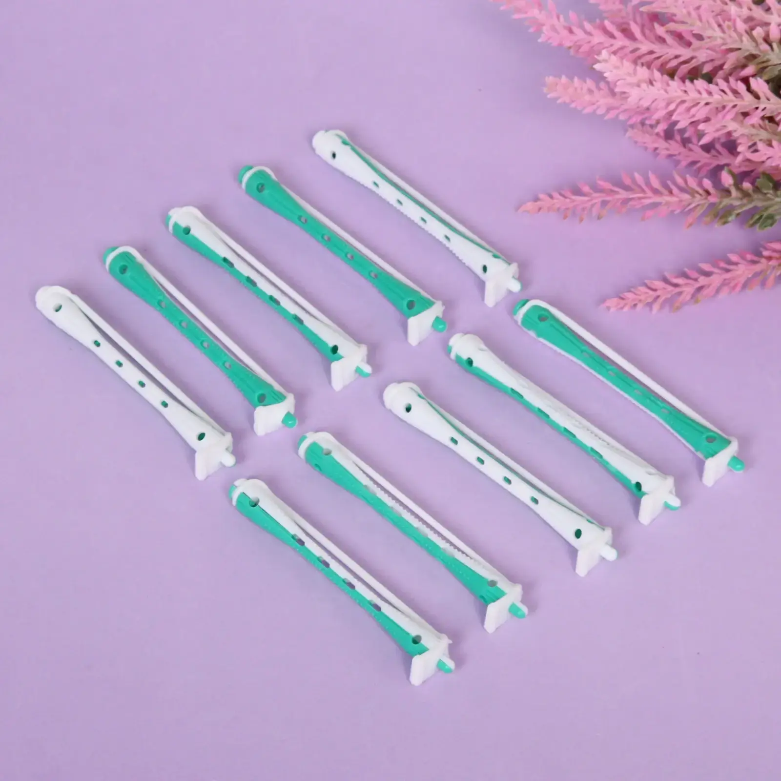 В наборе вы получите 10 бигуди диаметром 8 мм, что идеально подходит для создания мелких локонов и волн. Их белый цвет с зелеными элементами добавляет яркости и стиля вашему набору для укладки. Эти бигуди станут отличным подарком для любой девушки, которая хочет экспериментировать с прическами и создавать новые образы.