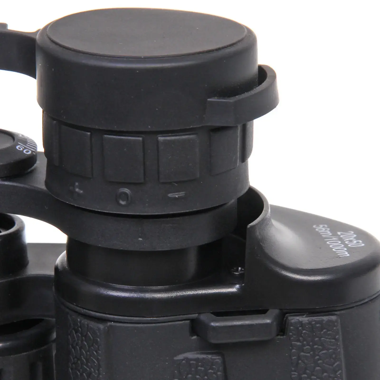 Бинокль имеет черный цвет с матовой текстурой, что предотвращает скольжение в руках. Размеры 20x50 указывают на его мощность и возможность наблюдения на расстоянии до 56 метров на 1000 метров. Рифленая поверхность на корпусе обеспечивает надежный захват, а защитные крышки на линзах защищают их от повреждений и загрязнений. Этот бинокль станет вашим незаменимым спутником в любых условиях.