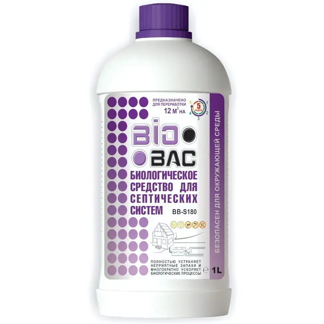 Объем упаковки составляет 1 литр, что позволяет обрабатывать до 12 м³ биоотходов. Средство безопасно для окружающей среды и не содержит вредных химических веществ. Используйте «BioBac» для поддержания чистоты и эффективности вашей септической системы, и вы забудете о проблемах с неприятными запахами и засорами.