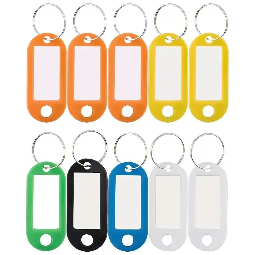 Бирки-брелоки для ключей, набор 10 шт, пластик, металлическое кольцо, цвета в ассортименте