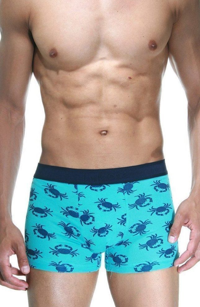 Трусы имеют классическую форму, облегающую бедра и ягодицы, что подчеркивает вашу фигуру. Бирюзовый цвет с темно-синим принтом крабов делает их ярким и запоминающимся элементом вашего бельевого гардероба. Эти трусы-боксеры станут отличным подарком для себя или близкого человека, который ценит комфорт и стиль.