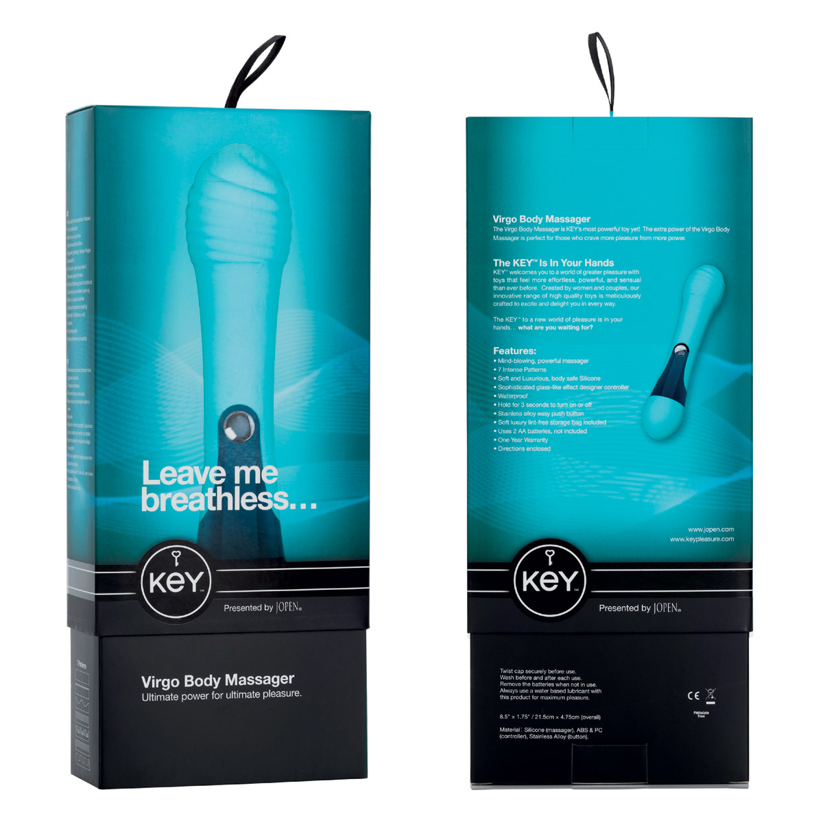 Вибратор VIRGO имеет классическую цилиндрическую форму. Его общая длина составляет 21.5 см, а диаметр — 4.6 см. Для максимального комфорта и сохранности материала рекомендуется использовать только водные лубриканты. Устройство поставляется в стильной бирюзово-черной упаковке, готовой стать подарком.