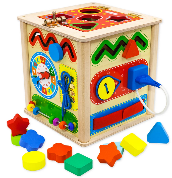 Бизиборд 'Развивающий куб' — это идеальный инструмент для развития вашего ребенка. Эта игрушка, созданная по методике Монтессори, помогает развивать мелкую моторику, воображение, логику и речь. Яркие цвета и разнообразные элементы делают обучение увлекательным и интересным.