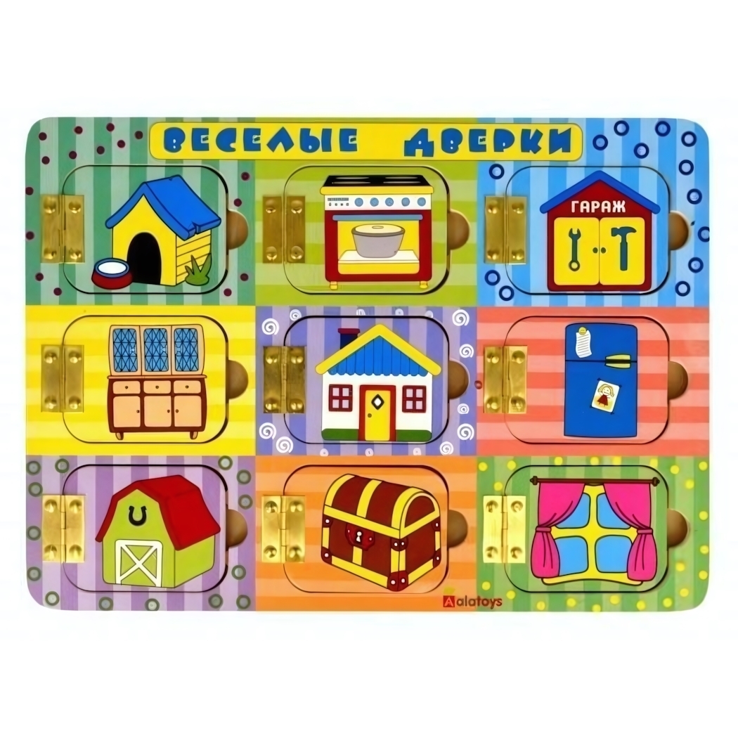 Бизиборд «Весёлые дверки» с 9 замками, 35х25 см, дерево, металл, для развития моторики