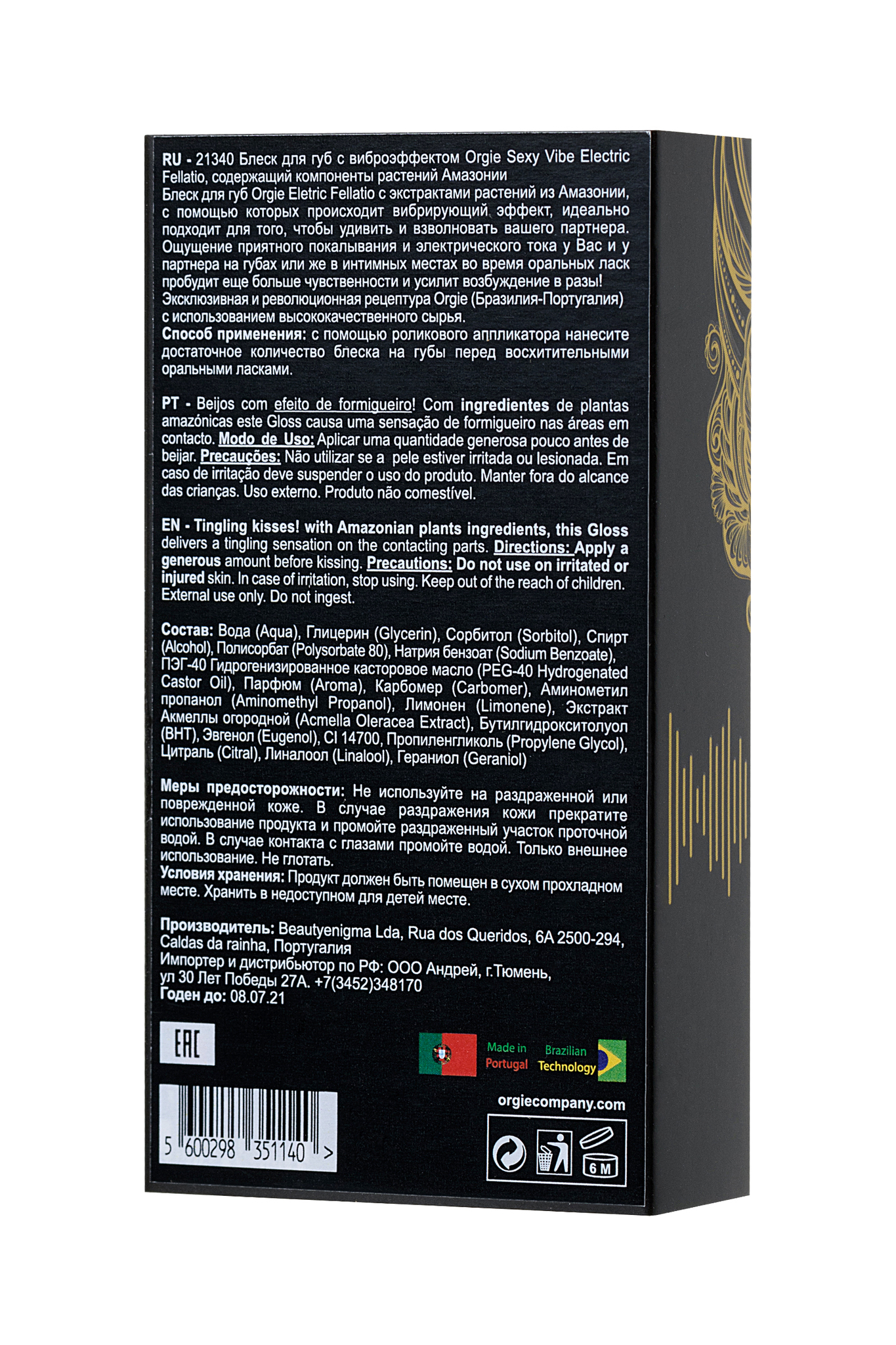 Блеск для губ 'Electric Fellatio' с эффектом покалывания, 10 мл, водная основа