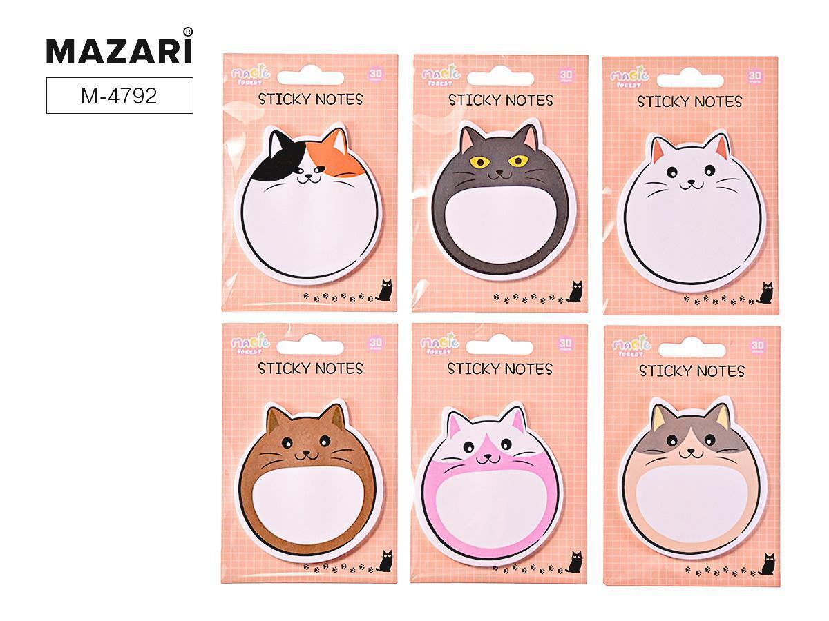 Блок для записи Mazari "Котики", 30 листов, 7.5x8 см, 6 цветов – милые стикеры для заметок