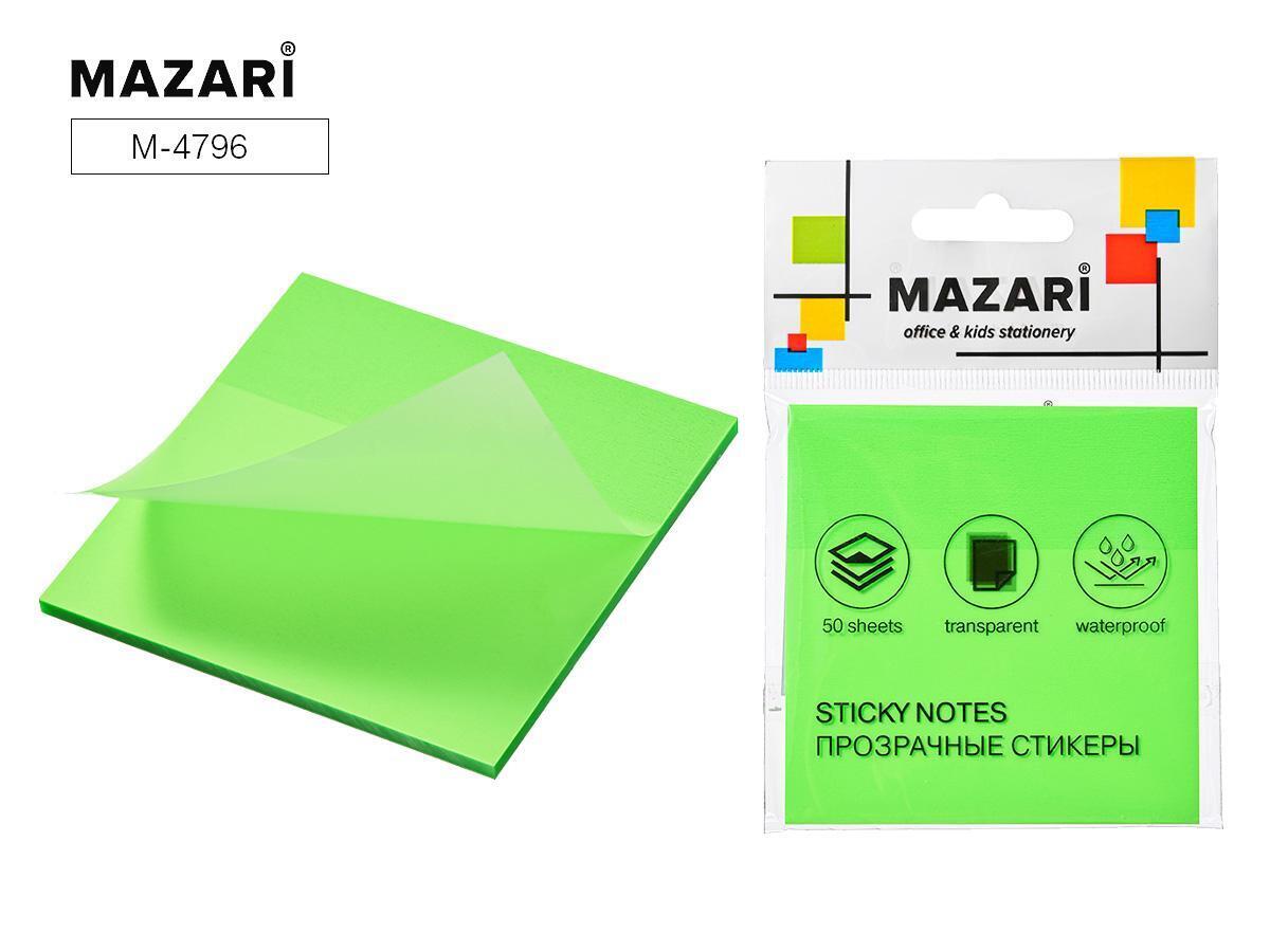 Блок стикеров "Mazari" прозрачный зеленый, 7.6x7.6см, 50л, пластик