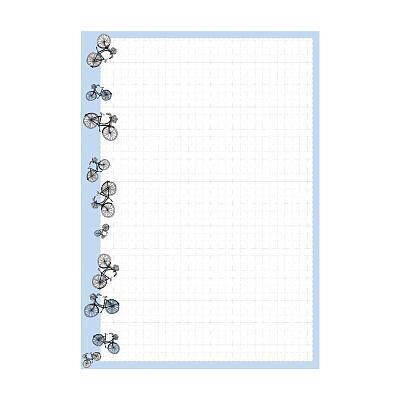 Строгая клетка помогает аккуратно вести записи, а стильные голубые поля с изображением велосипедов добавляют индивидуальности вашим заметкам.