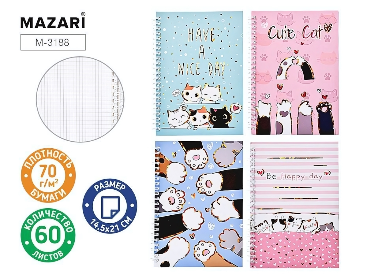 Выберите вариант по настроению: нежные пастельные тона с котиками, геометрические узоры или вдохновляющие надписи. Каждый блокнот в ассортименте — готовый подарок в защитной OPP-упаковке.