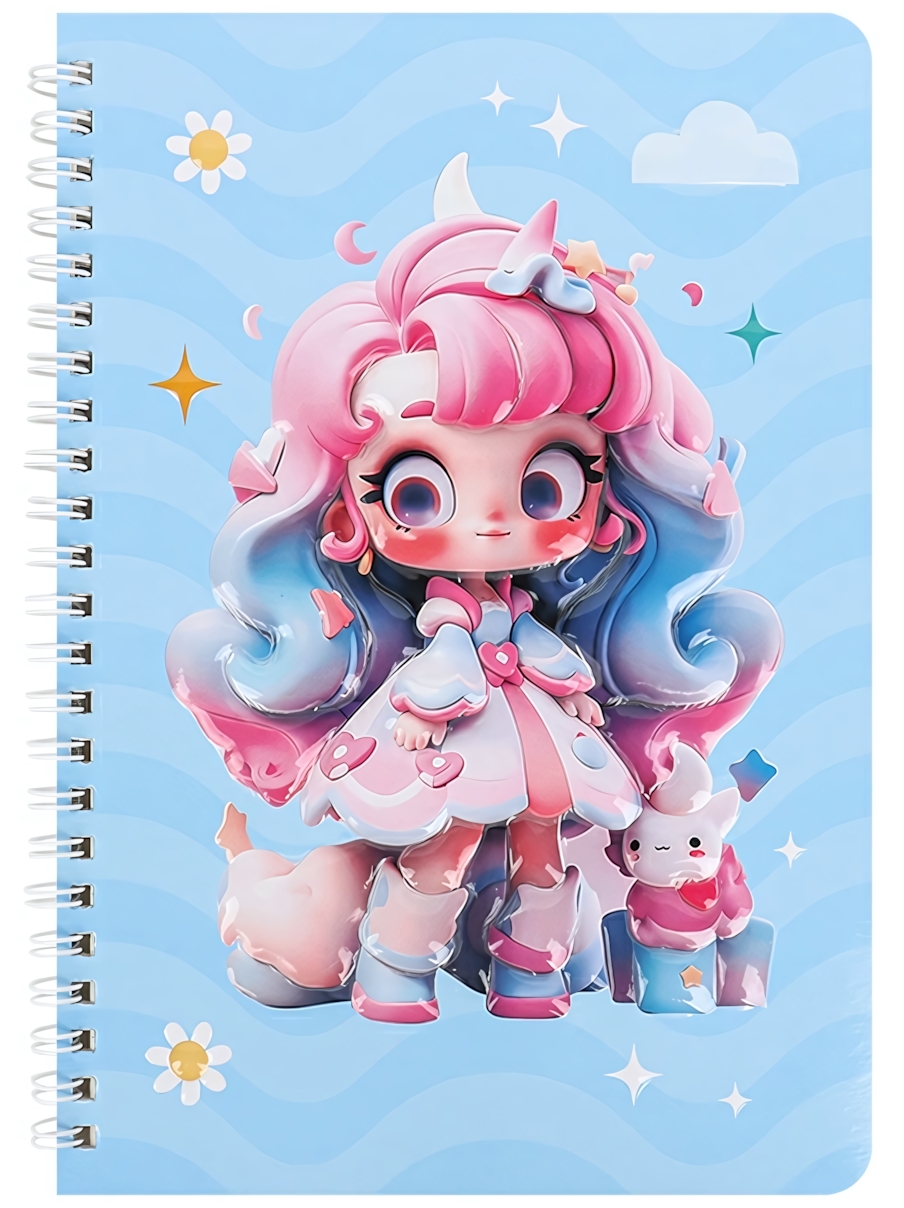 Блокнот на спирали «Девочка» — это удобный и стильный помощник для школы, дома и повседневных дел. Милый 3D-рисунок на обложке создает настроение и вдохновляет на новые идеи, а практичный формат позволяет всегда держать записи под рукой. Он подойдет для конспектов, личного дневника, списков дел и творческих набросков.