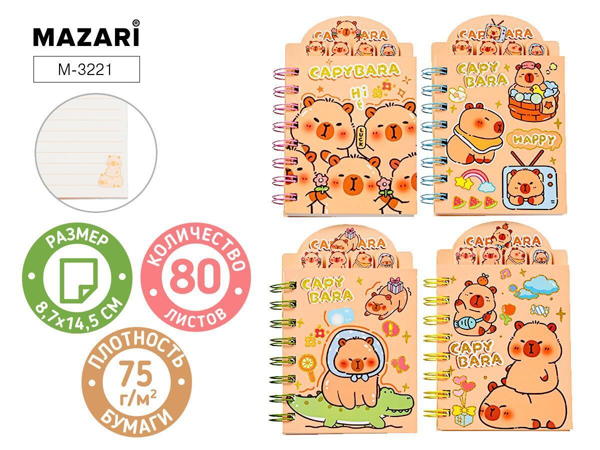Блокнот "Капибара" 8,7х14,5см, 80л линия, цвета в ассортименте