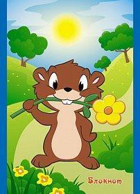 Блокнот для записей А6, 16 листов в клетку, милый бобер с цветком, "Апплика"