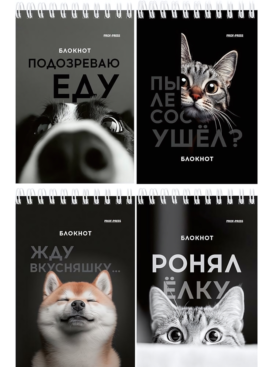 Записывайте гениальные идеи, важные задачи и списки дел в стильный блокнот, который всегда будет под рукой. Компактный формат А6 позволяет легко поместить его даже в небольшую сумку или карман рюкзака, а забавные дизайны обложек из серии "Смешные питомцы" с ироничными надписями про домашних любимцев гарантированно поднимут настроение вам и окружающим в течение дня.