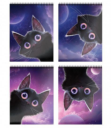 Блокнот А6 "Игривый космокотик", 40л, клетка, гребень, Уф-лак