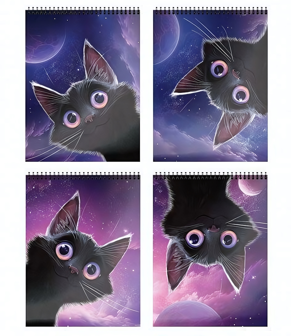 Благодаря прочному гребневому скреплению страницы не будут рваться. Размер 105х148 мм делает блокнот идеальным для быстрых заметок на уроках и дома. Мелованная картонная обложка с веселым космическим котиком поднимет настроение вашему ребенку.