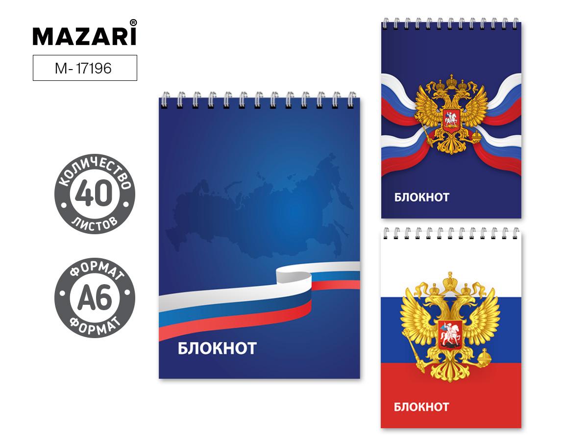 Блокнот А6 40л. клетка, обложка картон, блок офсет, на спирали, 3 дизайна, M-17196 (Mazari)