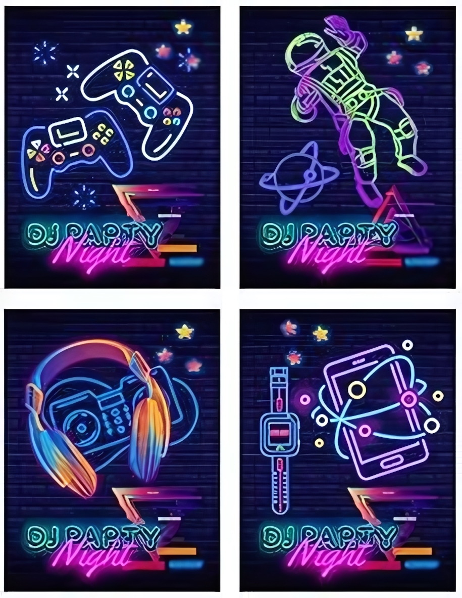 - 4 уникальных дизайна – выбирайте вариант под настроение: космическая тематика, музыкальная вечеринка, гаджеты будущего или игровой стиль