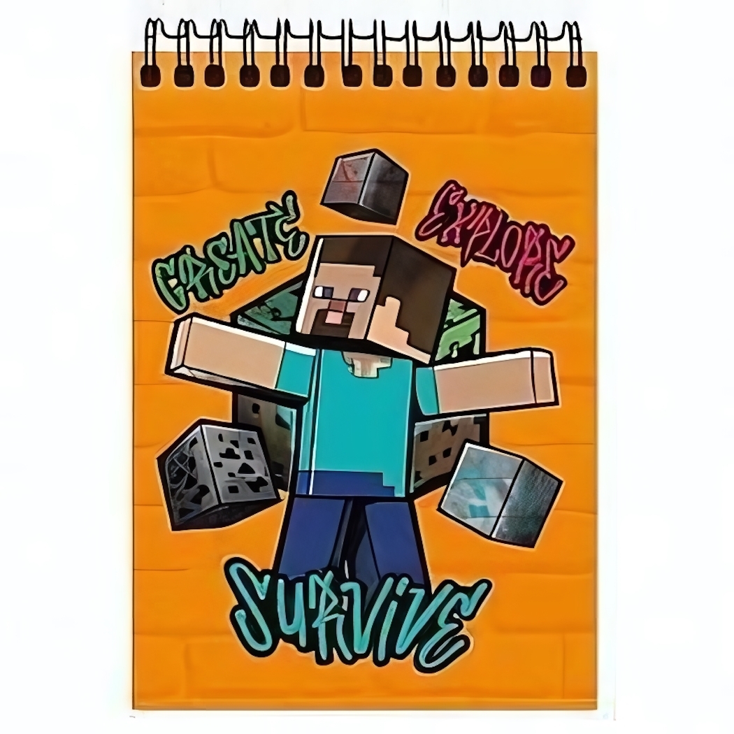 Компактный и стильный блокнот А6 с ярким игровым дизайном поможет вам упорядочить мысли, идеи и планы. Его удобный формат легко помещается в сумку или рюкзак, поэтому вы сможете записать важные заметки в любой момент. Дизайн обложки вдохновлен популярной кубической эстетикой, дополненной словами CREATE, EXPLORE, SURVIVE, что отлично настраивает на креатив и активное мышление.