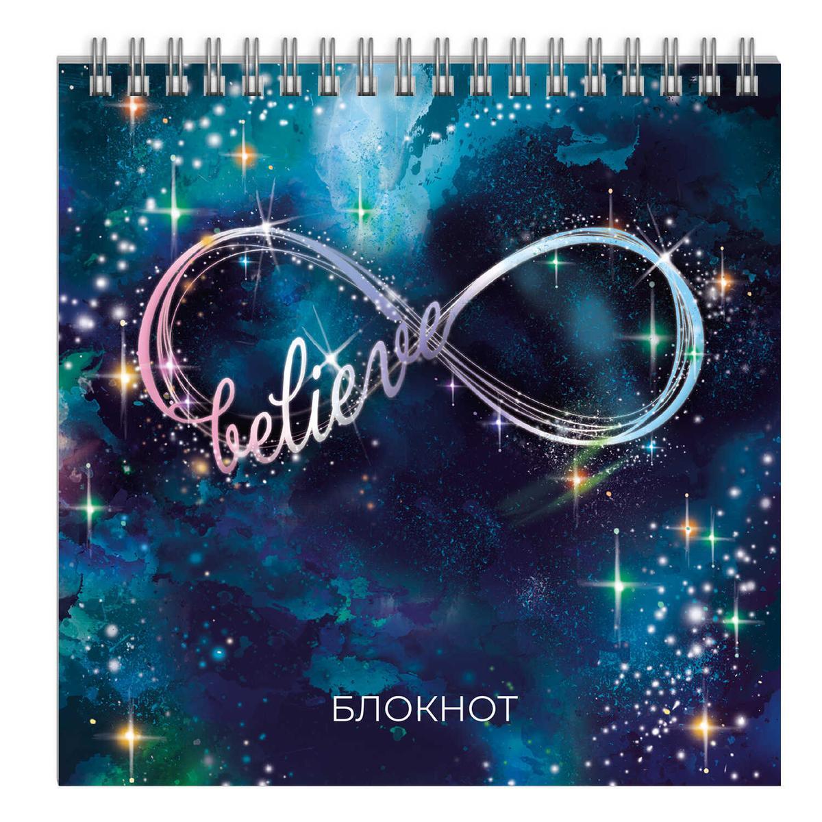 Глянцевая обложка с выборочным УФ-лаком создаёт эффект звёздного неба. Символ бесконечности и надпись «believe» вдохновляют на достижение целей, а матовая фольга добавляет тактильную выразительность.