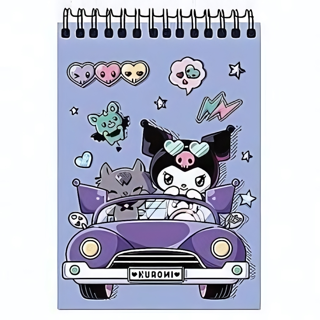 Фиолетовая обложка украшена изображением Куроми и забавных декоративных символов, выполненных с высокой детализацией. Крепеж в виде двойной черной металлической пружины обеспечивает надежность при интенсивном использовании. Этот блокнот станет отличным выбором для тех, кто ценит оригинальный дизайн и практичность в одной вещи.