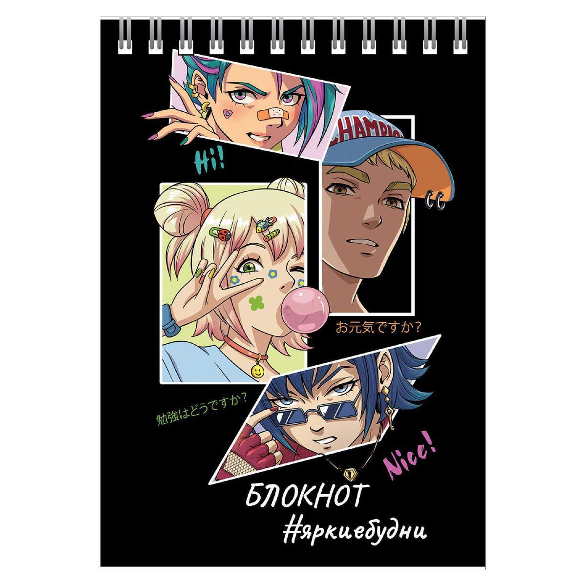 Блокнот А6 "Аниме герои", 80л, клетка, обложка с принтом, Россия