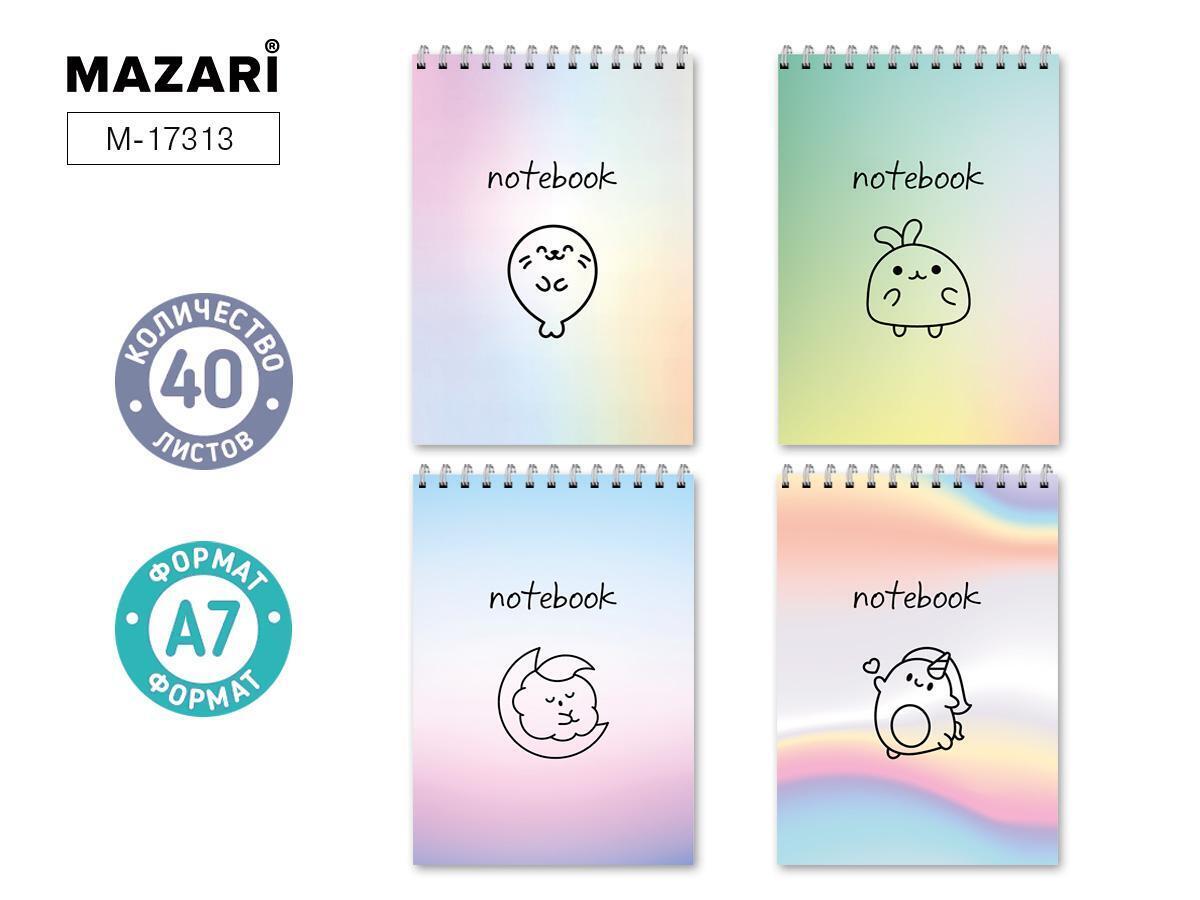 Блокнот А7 40 листов в клетку, на спирали, картонная обложка, цвет в ассортименте