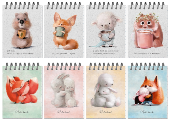 Записывайте идеи и планы в блокноте с яркими иллюстрациями животных, который поднимет настроение при каждом использовании. Мягкие пастельные тона и милые персонажи создают атмосферу уюта, а прочная обложка с УФ-лаком защищает ваши записи.