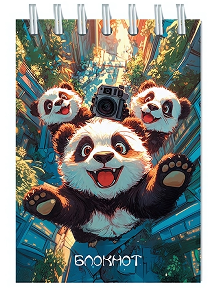 Блокнот А7 "Забавные панды", 48 листов, клетка, мелованный картон, металлическая спираль