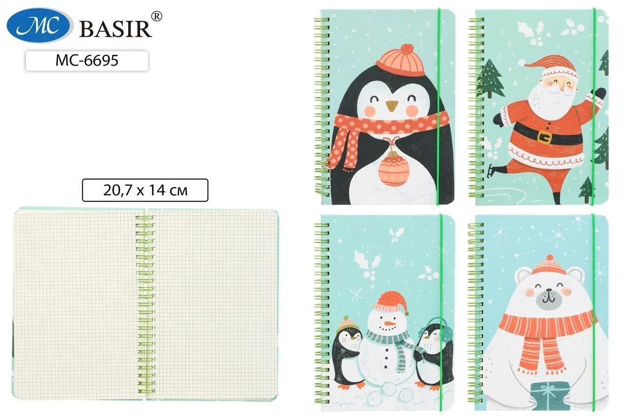 Блокнот детский "Зимняя мята", 60 листов в клетку на спирали, 20.7x14см, с резинкой, Basir