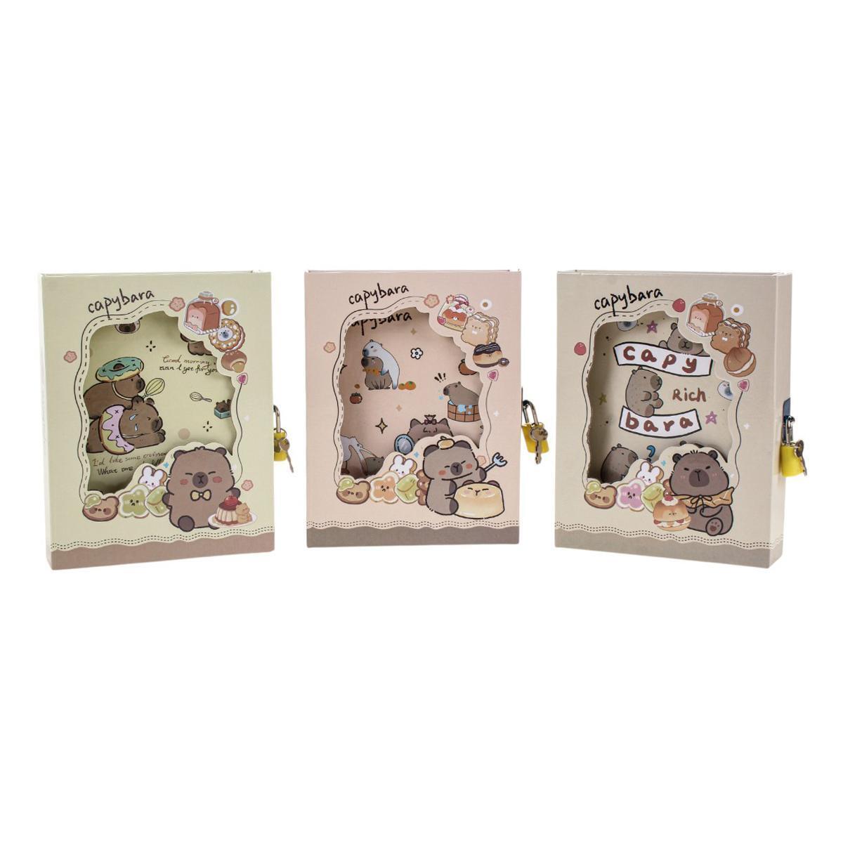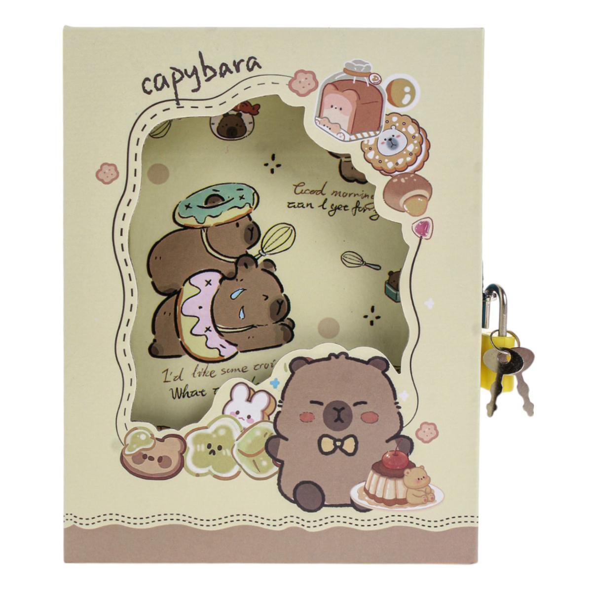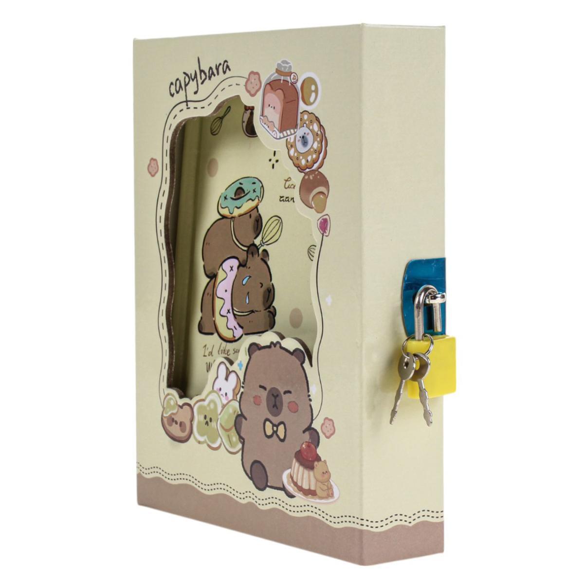 Этот блокнот станет незаменимым спутником в повседневной жизни. Его стильный дизайн с изображением капибары и сладостей не только радует глаз, но и создает атмосферу уюта и комфорта. Благодаря замку, вы можете быть уверены, что ваши записи будут в безопасности, а страницы не потеряются.