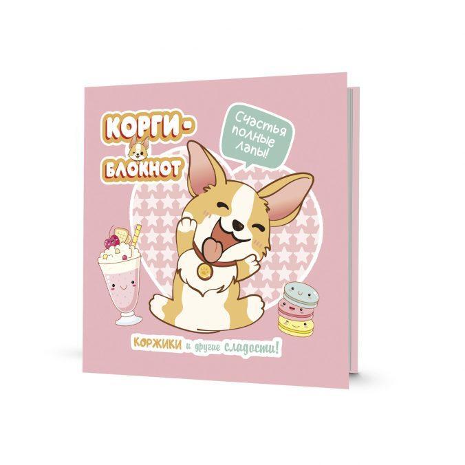 Блокнот 'Корги-2', розовый, 13*13см, 64 стр, квадратный формат, яркий дизайн