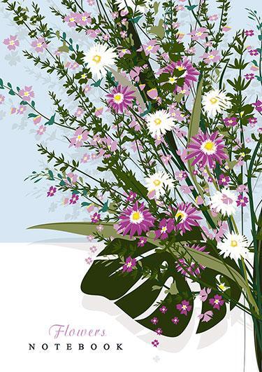 Блокнот А5 на гребне, 48л, клетка, обложка с блестками 'Букет', светло-голубой
