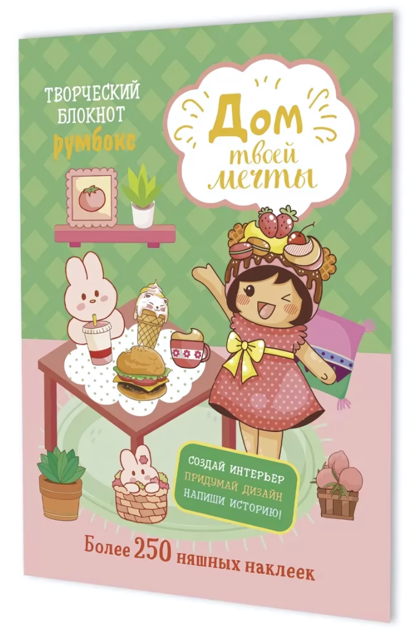 Блокнот сочетает в себе высококачественную бумагу — офсетную и мелованную, что позволяет легко клеить наклейки и рисовать без размазывания. Более 250 разнообразных наклеек обеспечивают бесконечные возможности для творчества: от уютных спален до сказочных кухонь. Обложка оформлена в мятно-розовых тонах с мультяшными иллюстрациями, привлекающими внимание и вызывающими улыбку. Это безопасная, экологичная альтернатива цифровым играм, помогающая ребенку сосредоточиться на позитивных занятиях и развивать креативность без зависимости.
