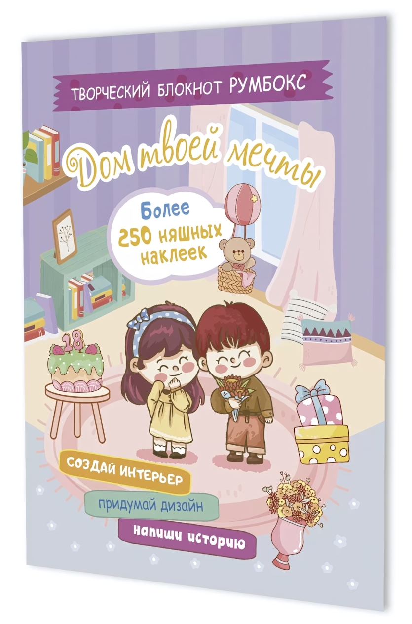 Творческий блокнот «Румбокс» с сиреневой обложкой — это увлекательное занятие для детей, которое развивает фантазию и творческие навыки. Уже с первых страниц ребёнок погружается в создание уникальных интерьеров кукольных комнат, используя более 250 красочных наклеек.