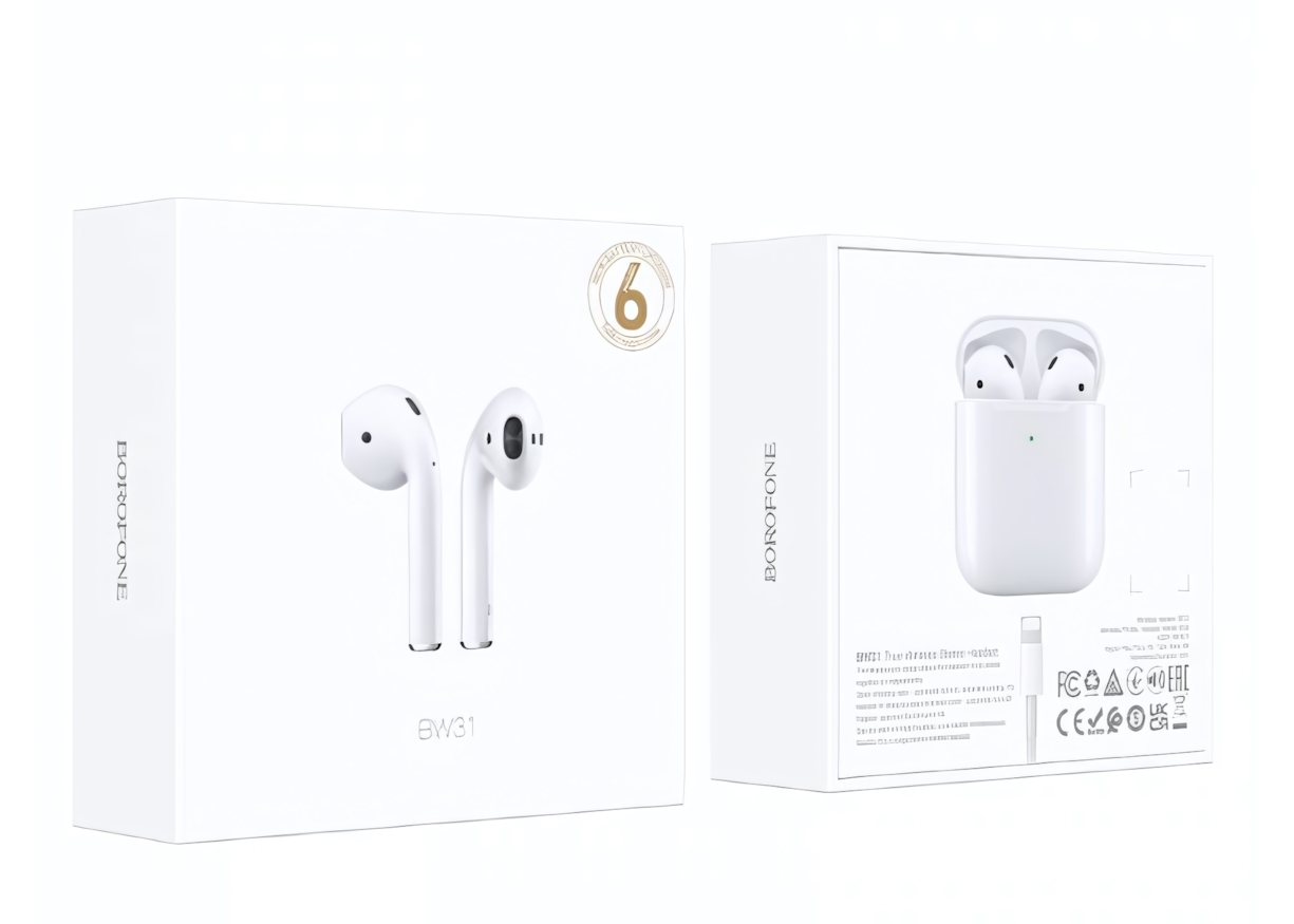 Наушники TWS Borofone «BW31», Bluetooth 5.3, белые, 20 часов работы, компактный кейс