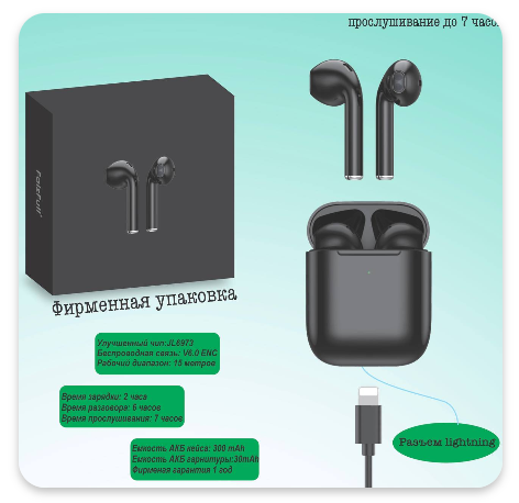 - До 7 часов непрерывного прослушивания музыки или разговоров — вам не придётся часто заряжать устройство.