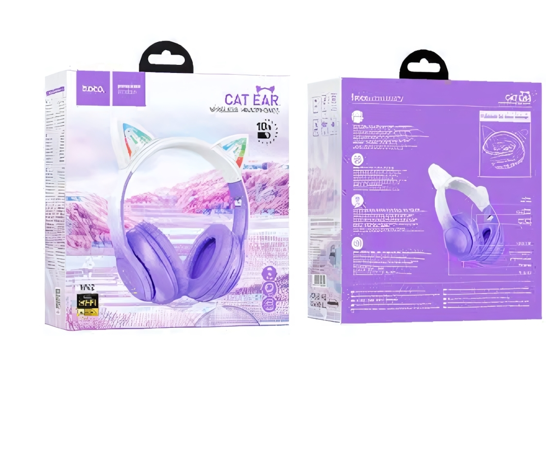 Погрузитесь в мир музыки с беспроводными наушниками HOCO W42 Cat. Уникальный дизайн с декоративными ушками в форме кота привлекает внимание и подчеркивает вашу индивидуальность.