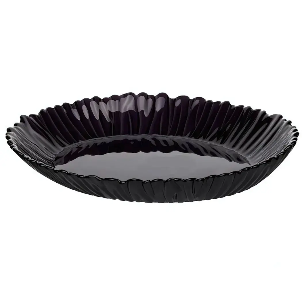 Блюдо овальной формы размером 33х25 см станет идеальным дополнением к вашему столу. Его стильный черный цвет с глянцевой поверхностью и рифленый край придают ему изысканный вид, который привлечет внимание ваших гостей. Это блюдо не только красиво, но и функционально, позволяя вам сервировать разнообразные блюда с комфортом и стилем.