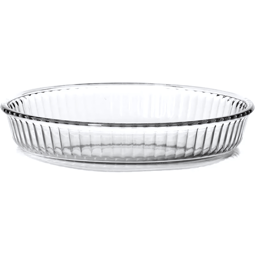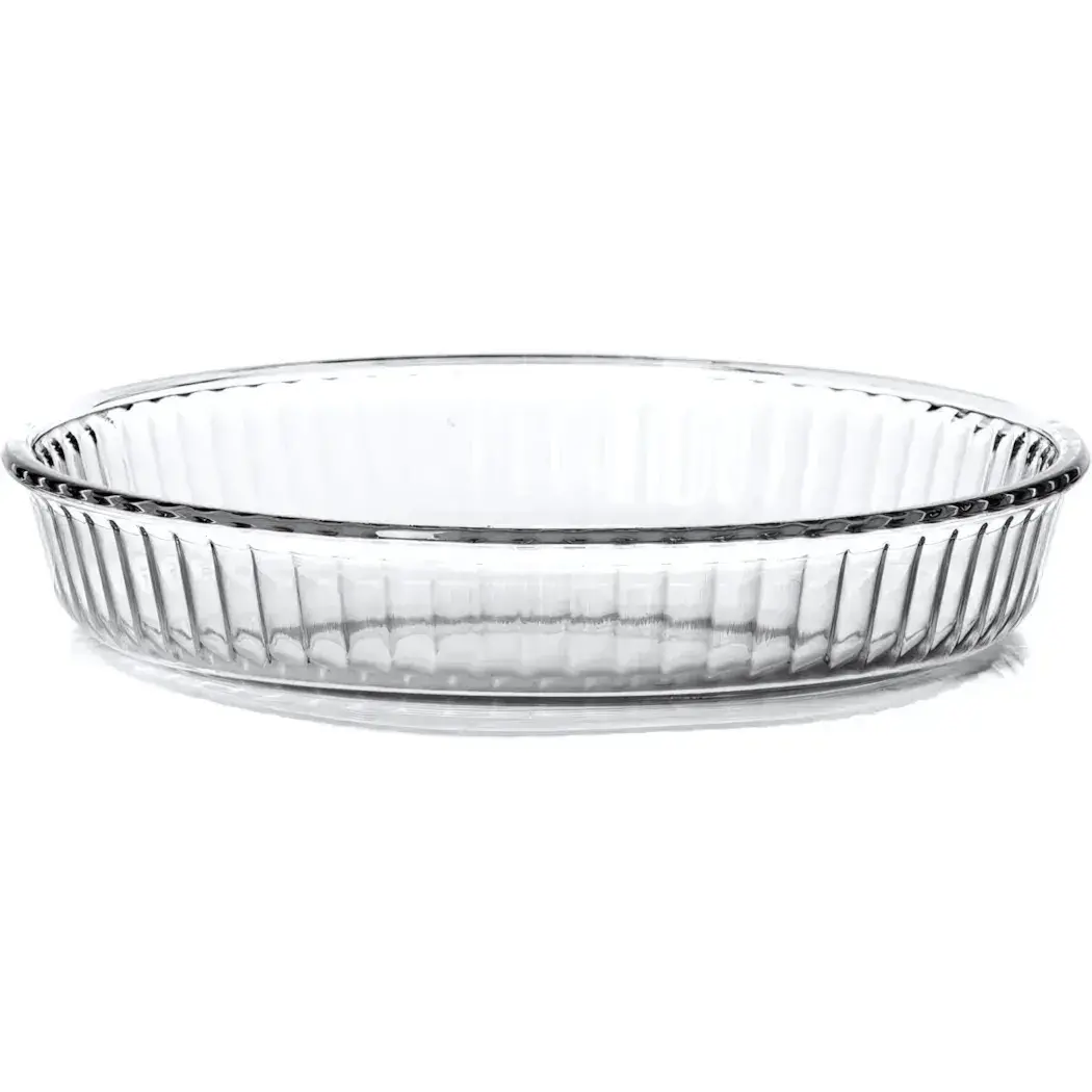 Блюдо круглое для сервировки и запекания, стекло, диаметр 26см, прозрачное, низкие рёбра, прочное